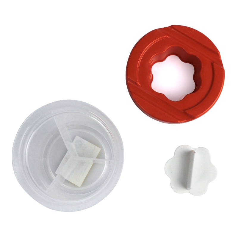 Capacul este prevazut cu un dop pentru evitatea varsarii continutului.