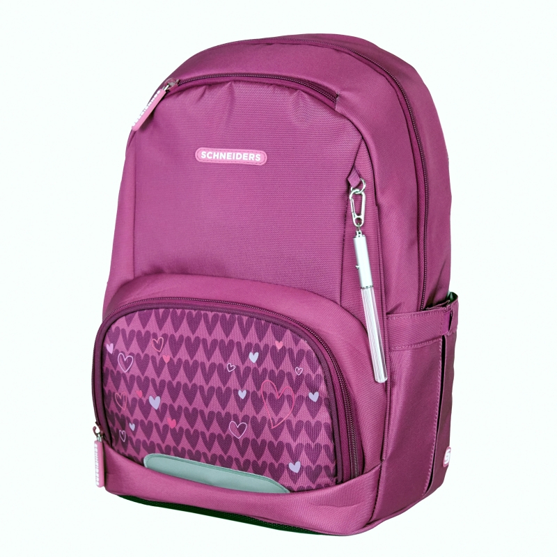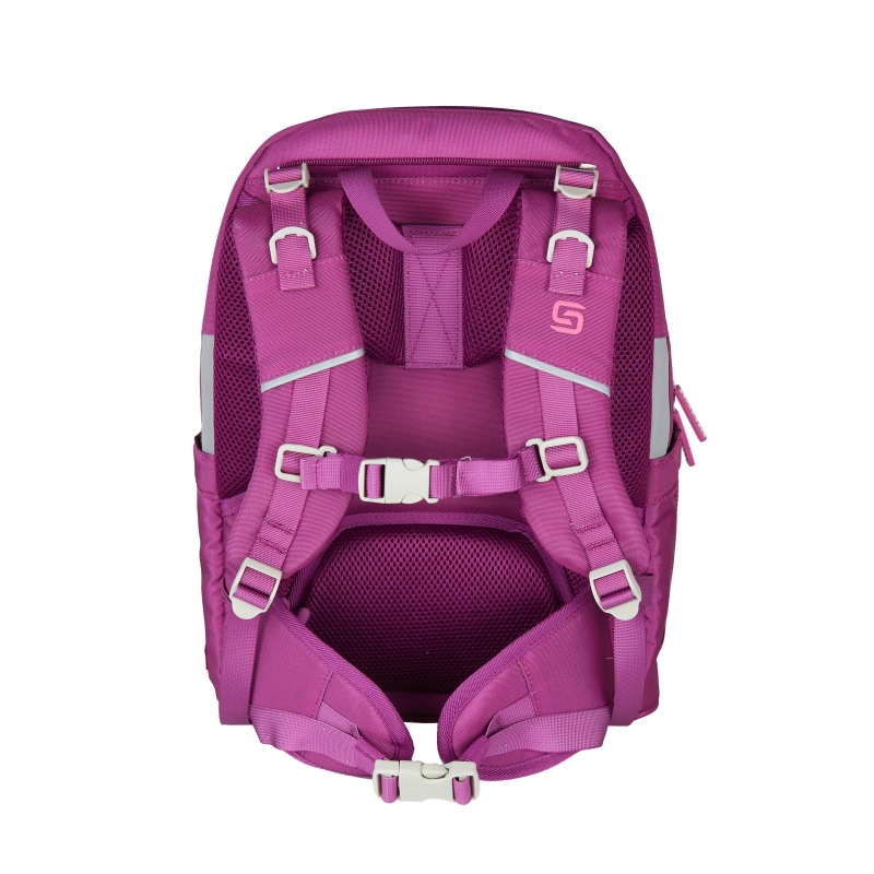 Rucsac Ergobase Purple Hearts de la Walker super usor, forma ergonomica, benzi reflectorizante, curea de piept reglabila si centura de sold detasabila.